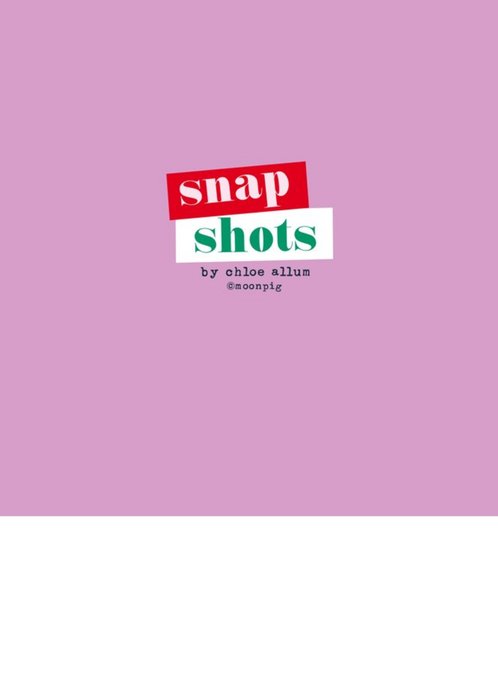 Front of card: There are five photo upload frames. There is a sixth frame with a stocking hanging over it and there are small decorative Christmas trees sprinkled across the design.