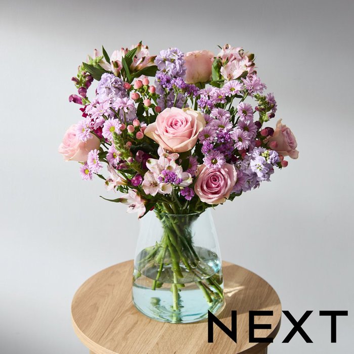 A fun and vibrant design with five photo upload frames, set on a pink background with bold graphic elements including yellow arrows and a starburst shape around the number "90".