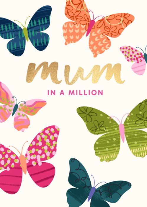 Mum In A Million Illustrated Colourful Butterflies Card
