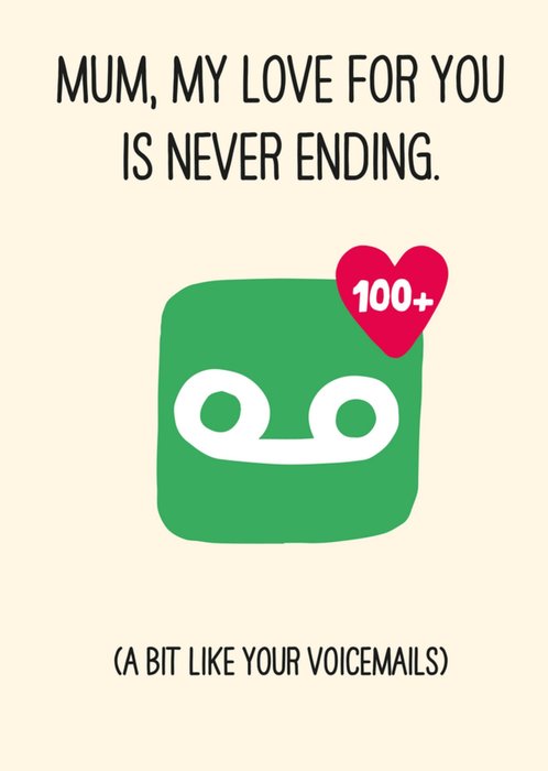"Mum, my love for you is never ending. (a bit like your voicemails)".