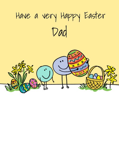 Featuring a watercolour style lamb and piglet facing each other with a small chick, butterflies, blossom, and painted eggs on a greeting card, set on a speckled pale beige background.