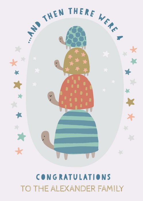 Natalie Alex Designs Illustrated Turtle Family of 4 Congratulations Card