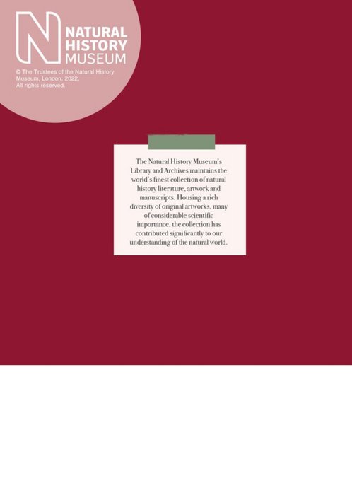Back of card: Natural History Museum logo and a paragraph describing the work the Natural History Museum does including information on it's archive and collection.