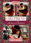 Front of card: Featuring three photo frames decorated with festive foliage. Text reads: "To my girlfriend with lots of love at Christmas and always". All text can be personalised!