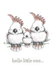 Illustration of a family of Cockatoos.
