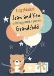 "Congratulations Jean and Ken on the happy arrival of your new grandchild". 'Jean and Ken' and 'grandchild' can be personalised!