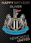 Front of card: Newcastle United F.C Birthday Card Featuring the Newcastle United F.C logo. Text reads: "Happy Birthday Oliver Newcastle United". 'Oliver' can be personalised!