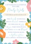 Text reads "Congratulations to the newly weds George & Danielle. Two hearts entwined, love's eternal embrace, on this day of joy, as you take your place. May your union be blessed, with endless bliss, a lifetime of love and a sweet tender kiss".