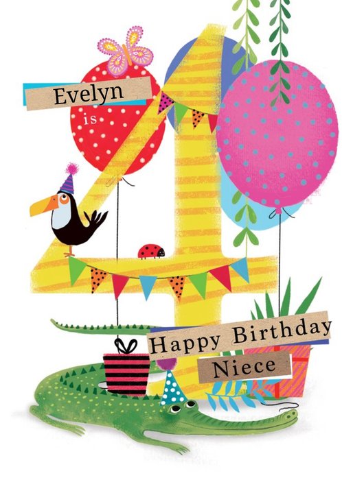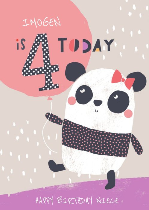 Niece Happy Birthday Card - Panda - 4 Today