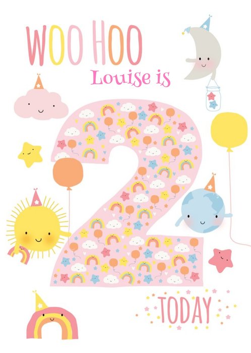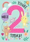 Niece You're 2 Today Cute Quirky Ilustrated Animals Birthday Card