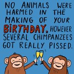 No Animals Were Harmed In The Making Of Your Birthday. Monkeys Toasting Champagne Card