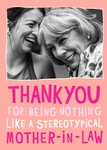 Text reads: "Thankyou for being mothing like a stereotypical mother-in-law".