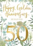 Okey Dokey Design Green Floral Pattern Golden Anniversary Customisable Card