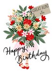 Okey Dokey Illustrated Niece Holding Large Bouquet Of Flowers Great Aunt Birthday Card