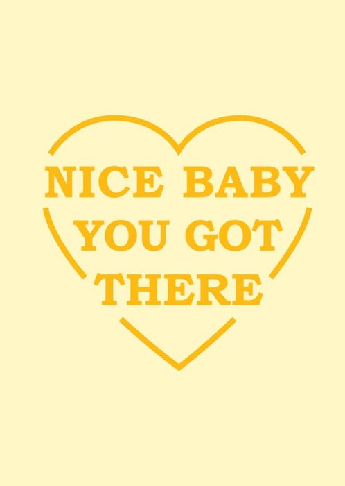 Orange Typography Inside A Heart Shape On A Yellow Background New Baby Congratulations Card