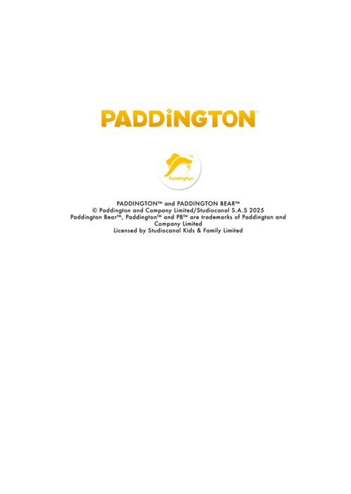 Illustration of Paddington Bear in his red hat and blue coat waving, with a tall stack of marmalade sandwiches beside him. A photo upload frame is shown in the top right corner with space for a name above. Bright yellow and orange background with marmalade jar and orange slice accents.