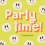 A cheerful yellow background covered with cream smiley faces featuring simple black line drawings. In the centre, bold cream and orange 3D text.