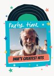 Featuring a modern illustration of a vinyl record in a sleeve, with space for a photo upload and an editable message. The design is centred on a white background scattered with colourful stars.
