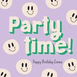"Party time! Happy birthday Emma. "Happy birthday Emma" is editable.