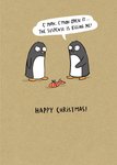 Penguins Opening Christmas Present Suspense Happy Christmas Card