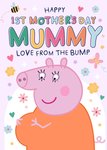 A sweet and colourful 1st Mother’s Day card featuring Mummy Pig cradling her baby bump, surrounded by adorable flowers, hearts, and butterflies.