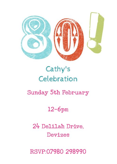 Personalised Letterpress 80Th Birthday Party Invitation