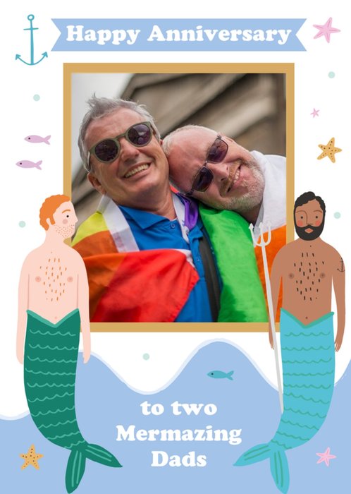 Personalised Photo With Mermen Illustration Pun Anniversary Card