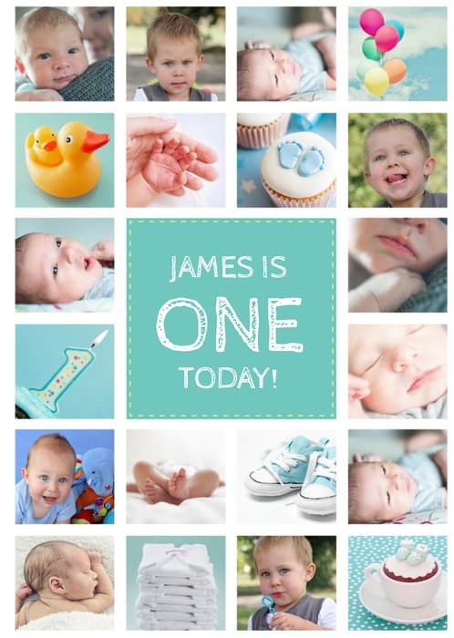 Photo First Birthday Card. 1st Birthday Card - You can upload up to 11 photos to this card!