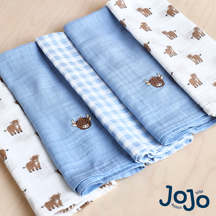 JoJo Maman Bébé Highland Cow Embroidered Muslins 5-Pack