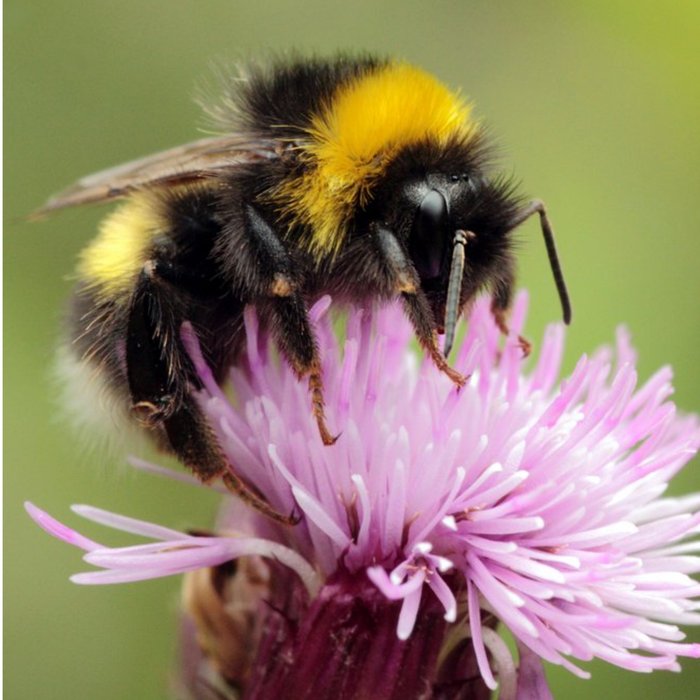 Photo of a bumblebee on a thistle, Glan Oughterard, County Galway.