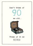 "Rob don't think of 90 as old... think of it as retro!" with Rob and 90 being editable