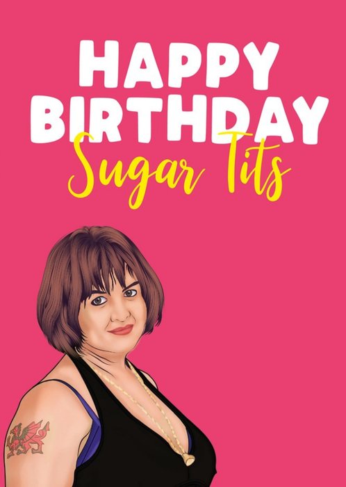 Front of card: A modern design with a pink dash border. This fully editable design allows you to add text and stickers to create a truly personalised card.