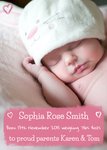 Pink Hearts Personalised Photo New Baby Announcement Card