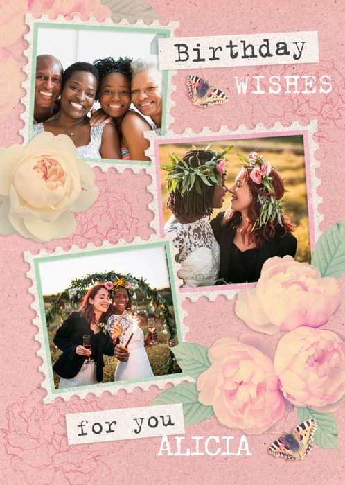 Pink Photo Upload Birthday Card - Birthday wishes for you Alicia