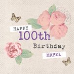 Pink Roses And Fluttering Butterflies Personalised Happy 100th Birthday Card