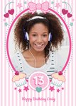 Pink Striped Cupcakes Happy 13th Birthday Photo Card