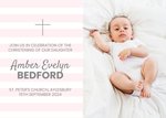 Pink Striped Photo Upload Personalised Christening Invitation