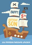Pirate Ship 5th Birthday Card for Your Son