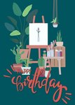 Plants and Painting Illustration Happy Birthday Card
