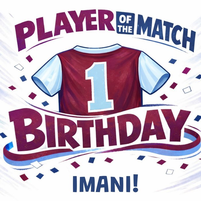Player Of The Match Blue & Purple Football Shirt Birthday Card