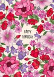 Poppy and Mabel illustrated floral design on a cream background. The non editable caption reads Happy Birthday.
