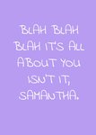 Purple Blah Blah Blah It's All About You Isn't It Personalised Greetings Card