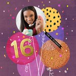 Purple Illustrated Balloons 16th Photo Upload Birthday Card