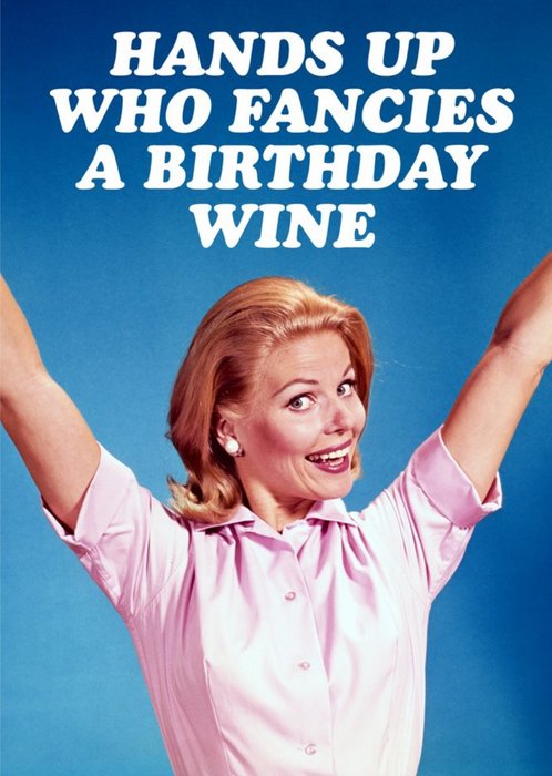 Photo of a woman holding a bottle of wine with text