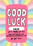 Text reads: "good luck chloe you've totally got this, take a deep breath and remember how awesome you are, go get 'em". chloe is editable.