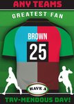 "Any team's greatest fan Brown 25 have a try-mendous day!". 'Any team's' must be personalised, 'Brown 25' can be personalised!