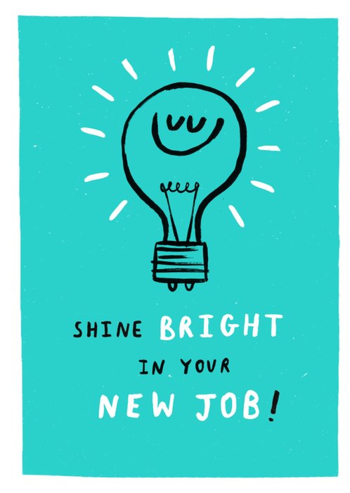 Featuring a fun illustration of a smiling lightbulb with white shining rays and handwritten lettering on a blue background with a white edge.