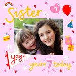 Sister Yay You're 7 Today Typographic Photo Upload Birthday Card