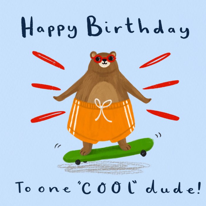 Skateboarding Bear Cool Dude Birthday Card