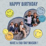 "Happy birthday have a fab day Mason!". 'Have a fab day Mason!' can be personalised!